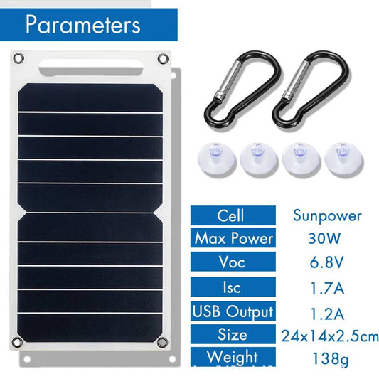 Outdoor Waterproof Solar Panel 30W USB Portable Power Bank for Hiking Camping Mobile Phone Charging Bank 6.8V